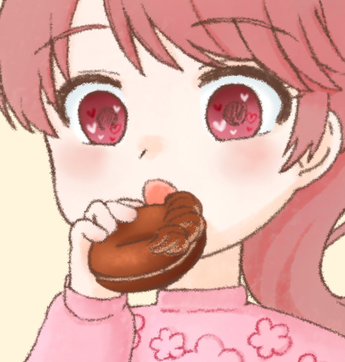 ミスドのヴィタメールなんとかいうチョコのドーナツめっちゃうまかったな🍩っていう絵 #椎名法子 #イラスト