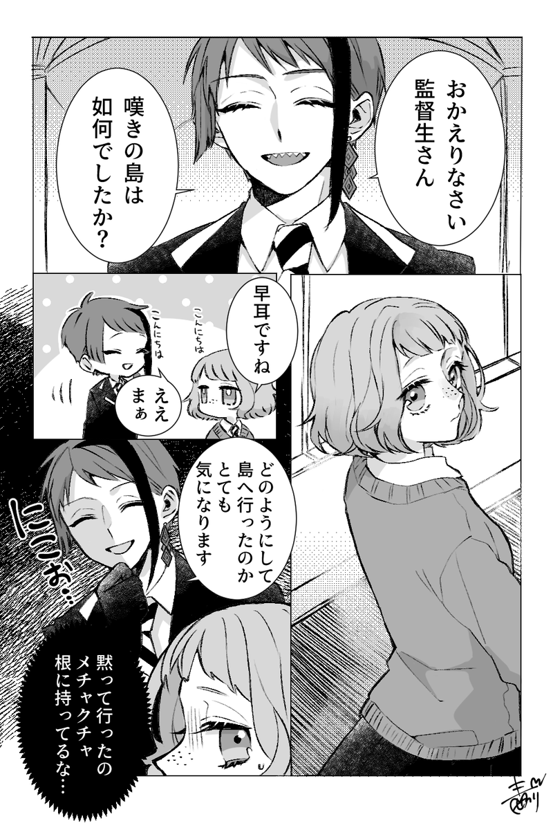 208 2287 (※顔有女監督生) ジェ監♀まんが🐬🍒 4枚+おまけ 22/03/07 23:16