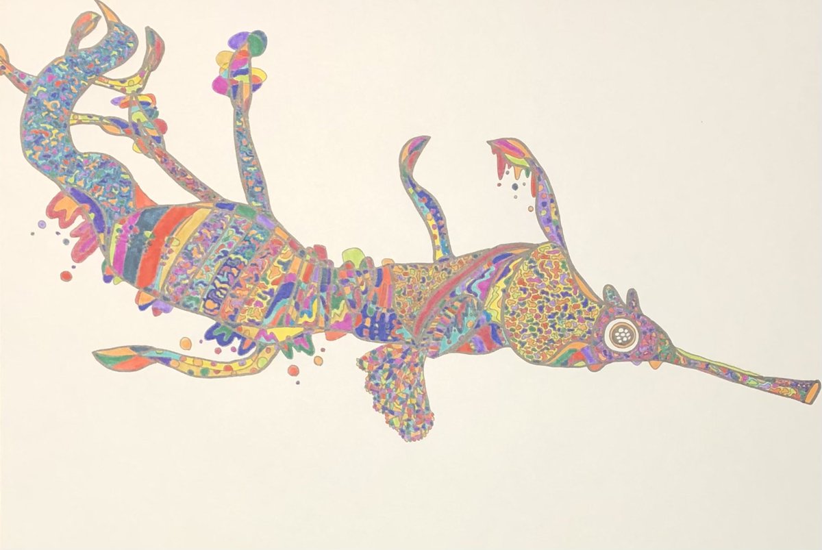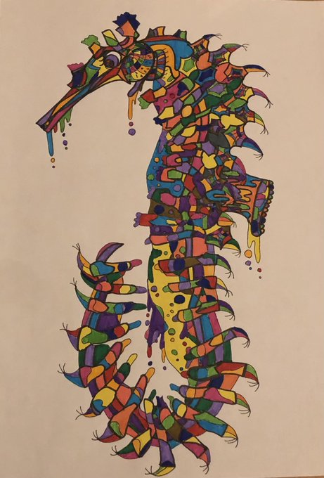 「タツノオトシゴ」 タツノオトシゴってドラゴンみたいで、かっこいいですよね 図鑑を見て描いてみて描いてみました。 #タツノオトシゴ #魚 #イラスト #イラスト好きな人と繋がりたい #illustration #絵 #絵描きさんと繫がりたい #art #colorful #絵柄が好みって人がいればいいなぁ