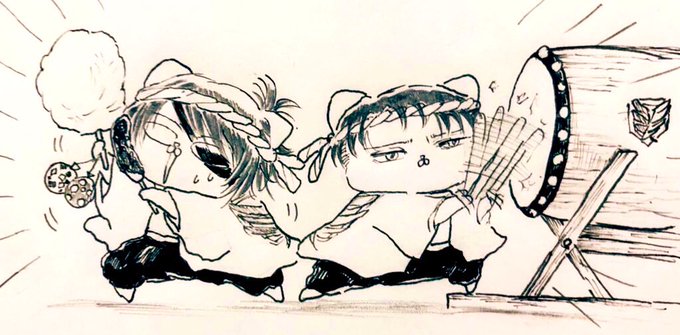 祭りに…全力で参加してた頃のリバイとはんじさんを描きました……