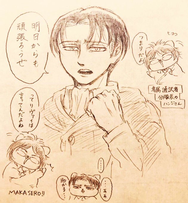 明日からまた一週間が始まってしまうので兵士長からの激励と通訳分隊長を描きました