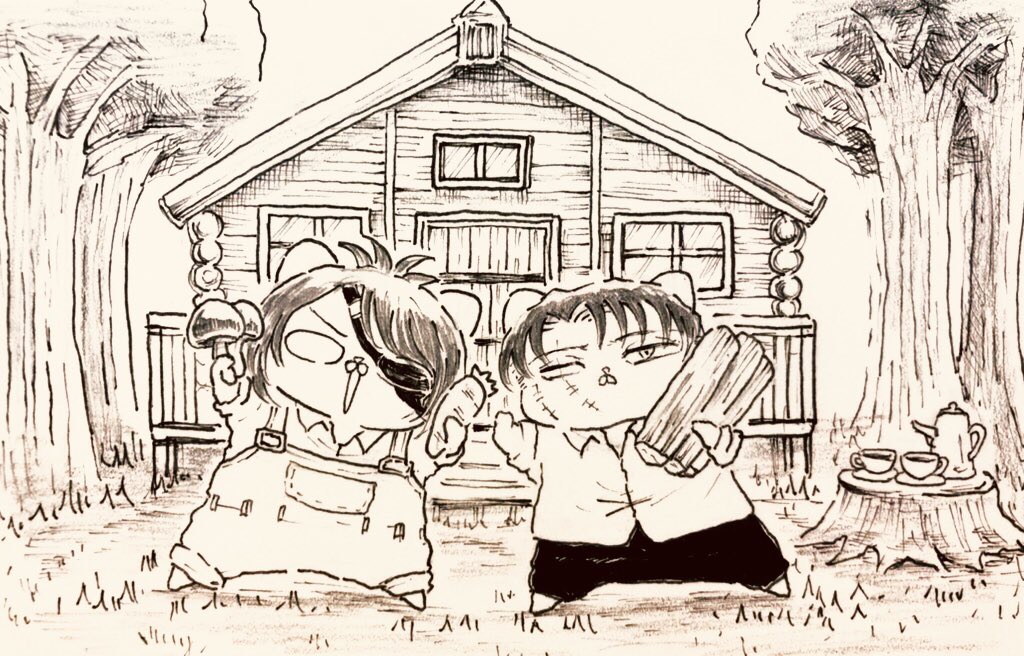 # 今年の4枚 リバイとはんじさんを沢山描けて幸せでした☺️ 来年は漫画をもっと描ける年にできたら良いなと思います…。