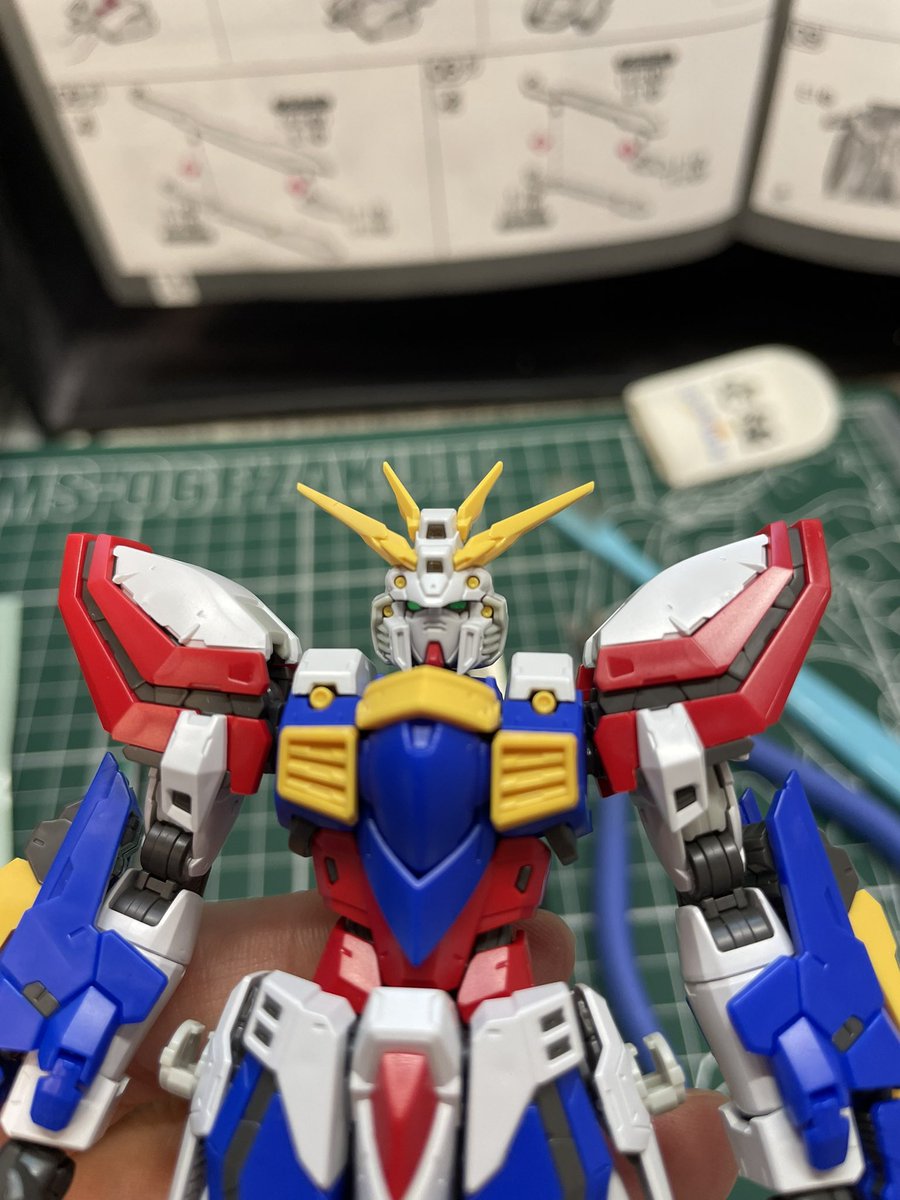 完成しました! スミ入れデカールのみですが見てやってください #RGゴッドガンダム #ガンプラ好きと繋がりたい #ガンプラの画像貼るとRTされると聞いて #ガンプラはどんな自由な発想で作ってもいいんだ