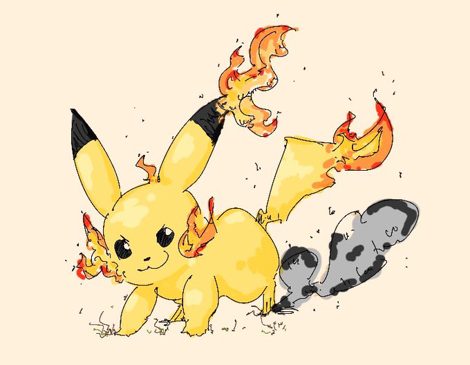 2 27 テラスタルを使わずに炎タイプになるピカチュウ。 #ポケモン #イラスト #ピカチュウ 22/08/23 18:53