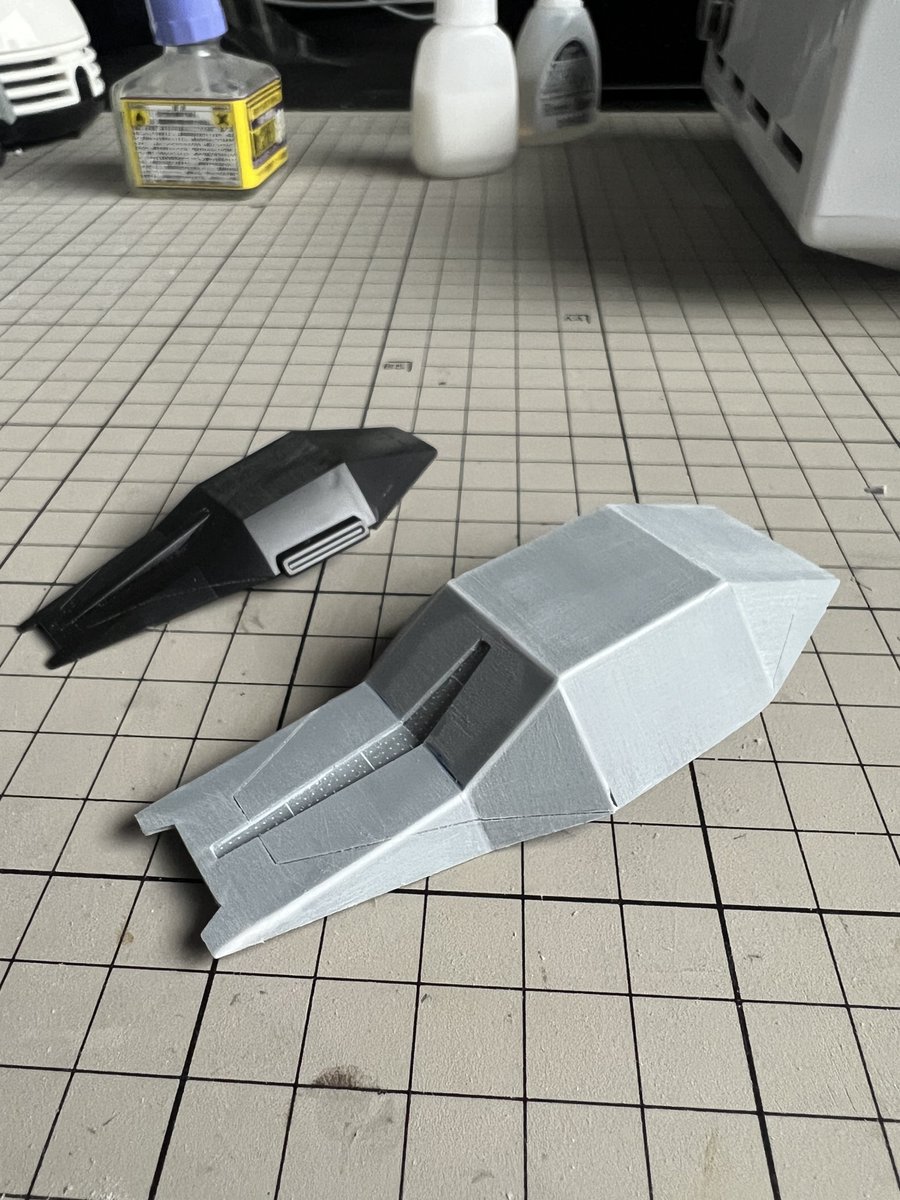1 5 今日も設定画と睨めっこしながら… 脚部が変形の都合上独特な形状なので、ガッツリ削って盛って形状出ししてみました。 #ガンプラ 23/06/04 17:46