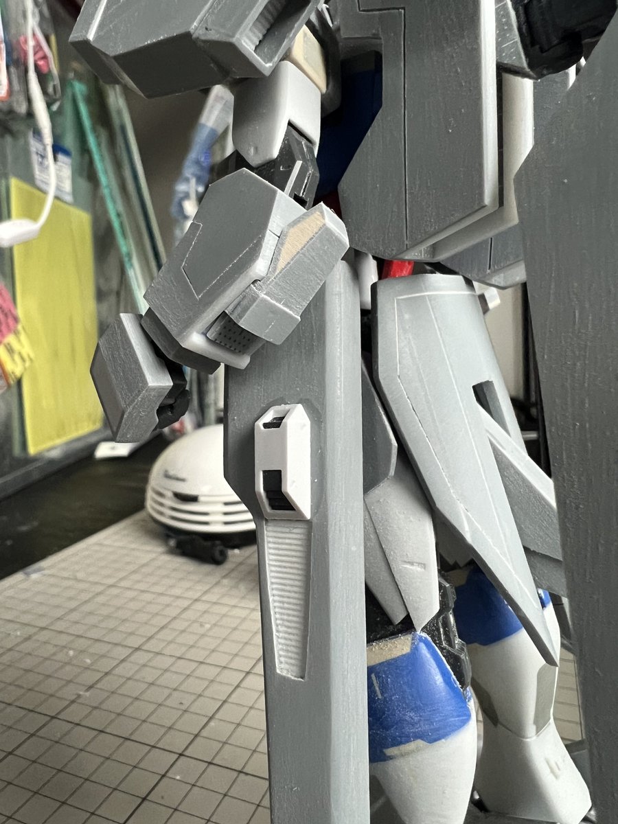 今日も設定画と睨めっこしながら… 脚部が変形の都合上独特な形状なので、ガッツリ削って盛って形状出ししてみました。 #ガンプラ