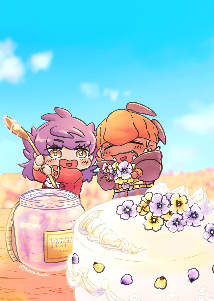 ダンキバ / dnkb 素敵なまろを見たダキがケーキを作ってくれてます🎂 あまくておいしいスミレの砂糖漬け💠