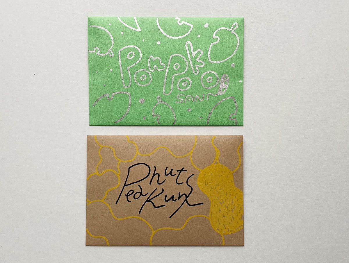 先日ぽこピーの2匹へ送ったお手紙セットを出す前に撮影しておいたので記録。ダイソーの封筒に同じくダイソー油性カラーペンで手描き。便箋もつくったよ~!作るのたのしかった〜🍃🥜 #ぽこあーと #オシャレになりたいピーナッツくん