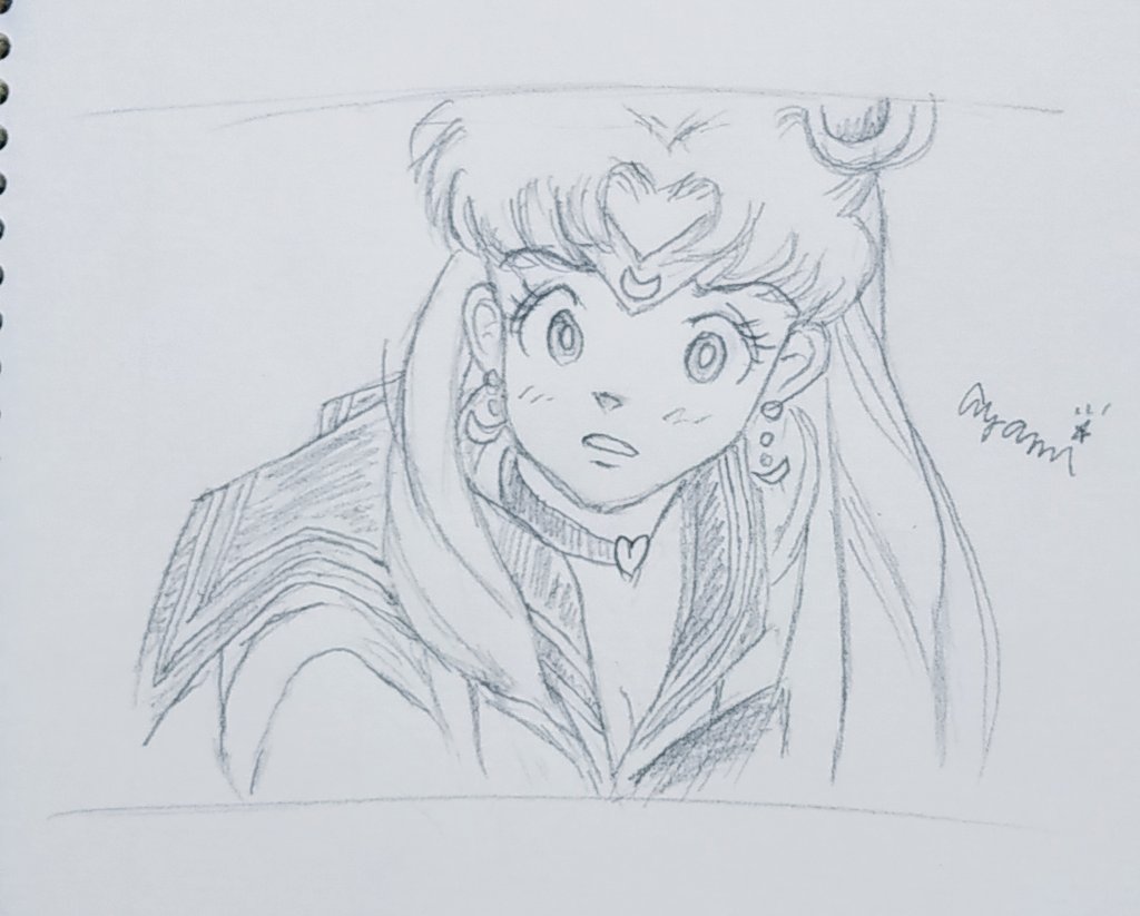 自分の絵柄で…ってことだけど、普段の絵柄じゃないような?ほっぺたに線は前描いてたかな。セーラームーン、友達の娘っこが好きで描いたことはあるんだけど…。 #sailormoonredraw #sailormoonredrawchallenge