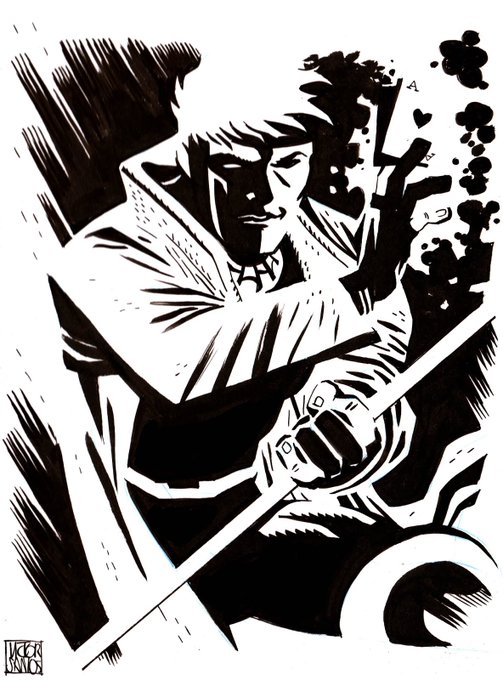 #Inktober 25: #Deathblow When #JimLee discovered the Frank Miller´s #SinCity comics/ Cuando Jim Lee descubrió los cómics de Sin City de #FrankMiller victorsantos.bigcartel.com #Inktober2019 #comicbooks #90s #imagecomics #inktoberday25 #VictorSantos #wildstorm #blackandwhite