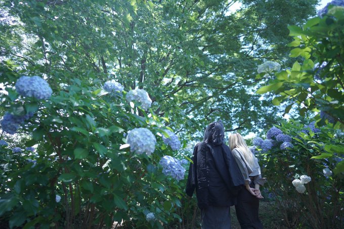 5 14 【刀剣乱舞/cos⚠️典さに⚠️審神者顔有り】軽装*大典太光世/典むい 水無月の逢瀬は紫陽花を見に ___________ 大典太:@pollux2525 主:@muihonmaru photo:@Delicious78ham 23/06/29 12:03