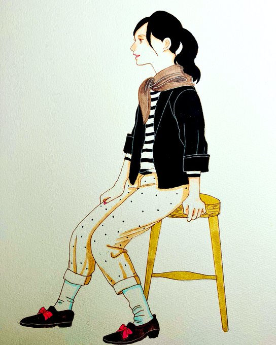 雅姫さんのお写真見ながら(⁎⁍̴̛ᴗ⁍̴̛⁎)雅姫さんのファッションもインテリアも大好きです(*´ω`*) #イラスト #イラスト好きさんと繋がりたい #illustration #アナログ #コピック #雅姫さん