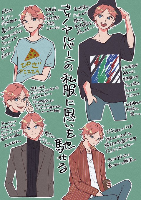 ディノが実装されるかどうかはわからないけど、とりあえず今しかできない私服妄想を……… どんな系統の服着るんだろうなディノ……… #エリオスR_FA