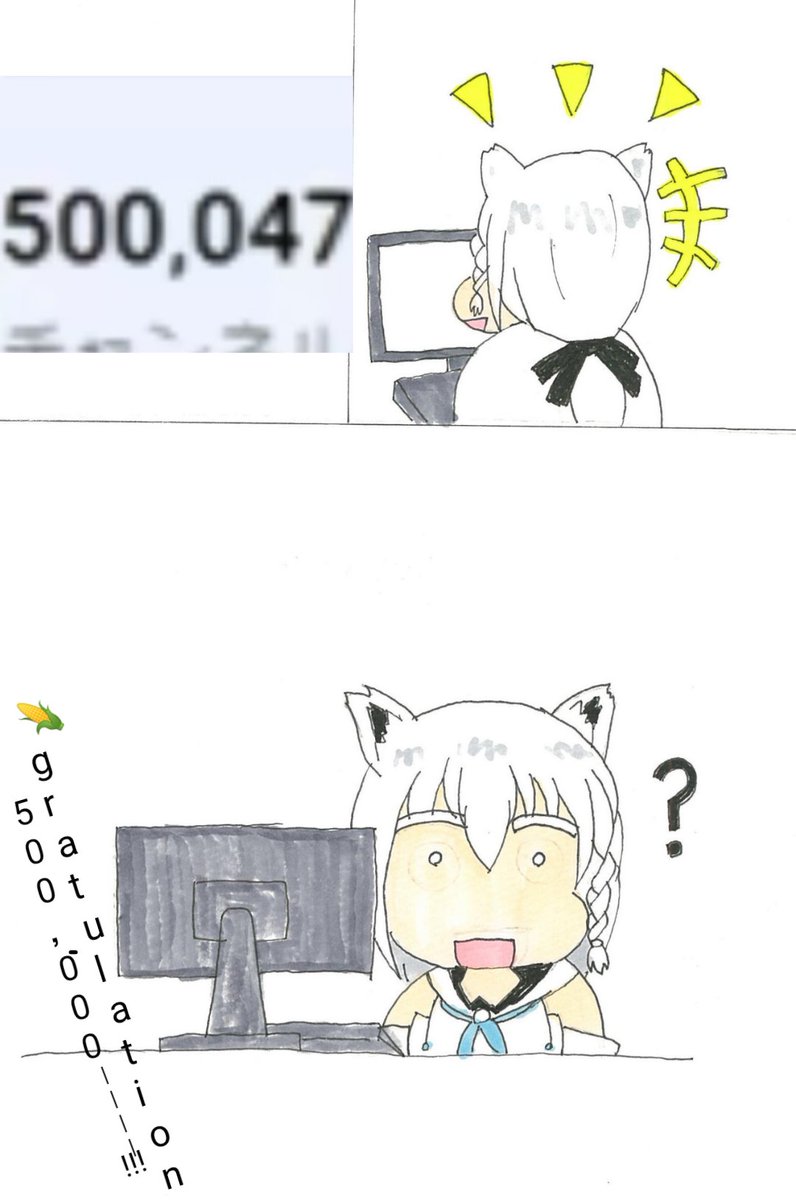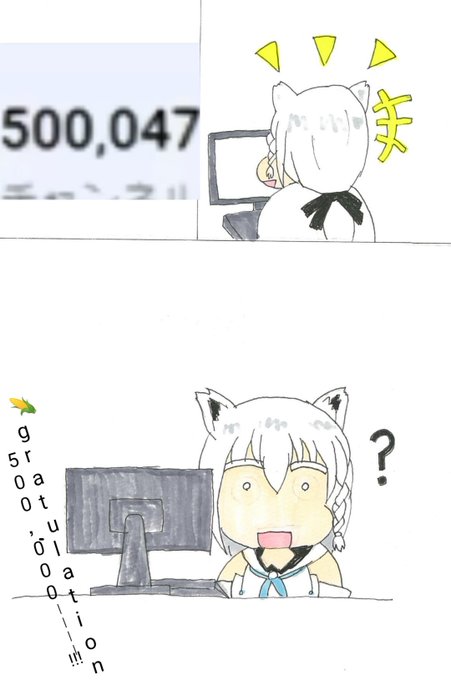 それは待機画面から切り替わって1分45秒後の事であった… 50万人達成おめでとうございまーっす!! #絵フブキ