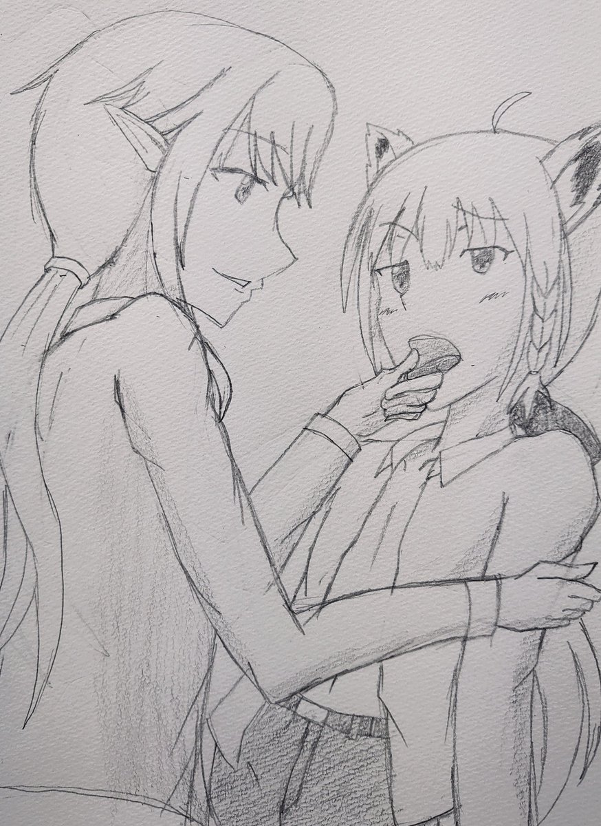 あれ…空が白んでいる… 描き終わってなんだこの謎シチュとか思ったけど深夜テンションだししかたないよネ( 手むつかしい #HOLAURENT #絵フブキ #しらぬえ