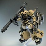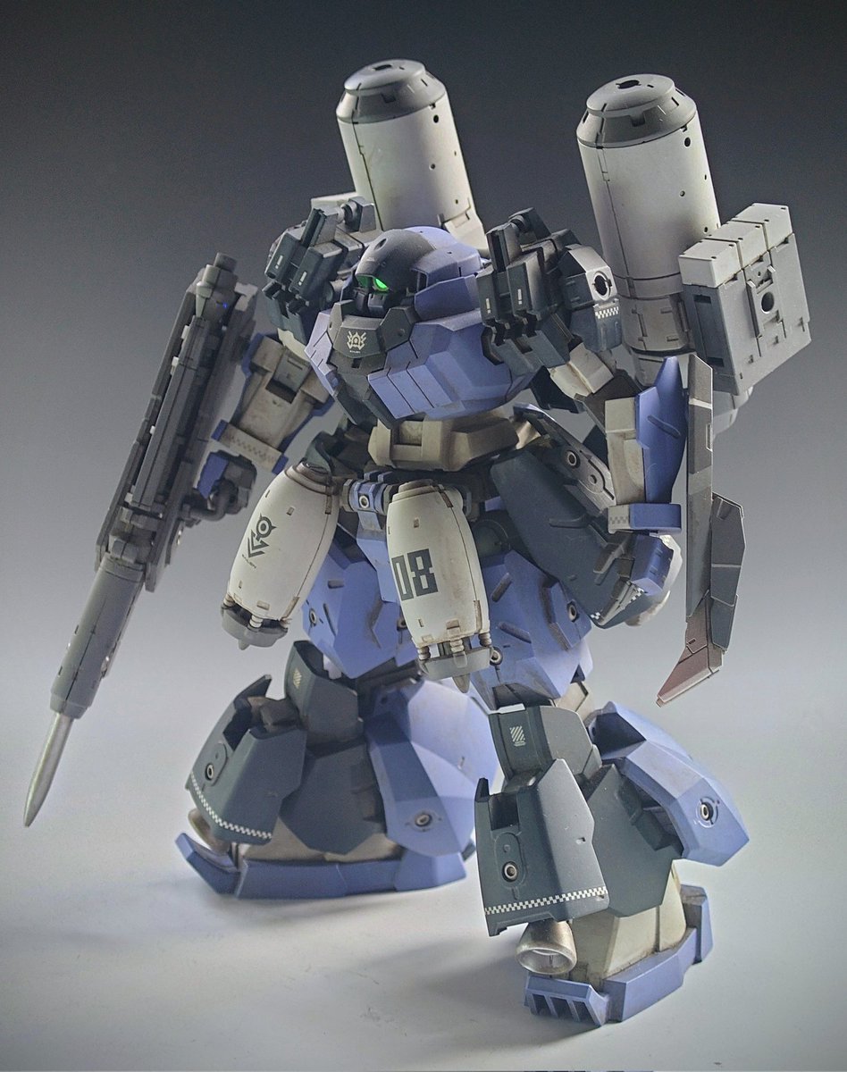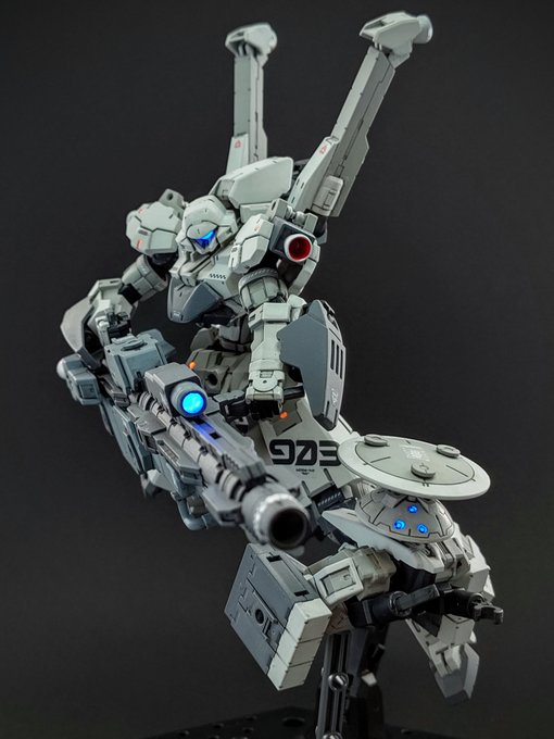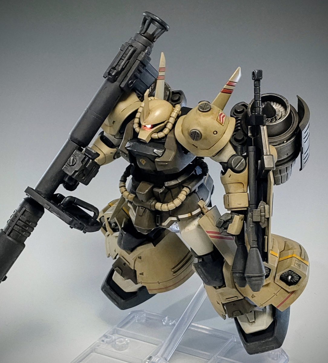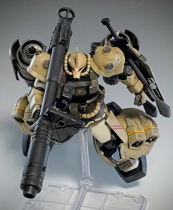 グフ フライトタイプ リペアード 長年のゲリラ活動で肩部バーニアの予備部品が尽き、一度は飛行不能となったが、強奪した大型輸送機のジェットエンジンによって推力の不足を補い再び空を飛ぶことになった。 #俺たちのトリントン #俺トリジオン残党軍 #ガンプラ