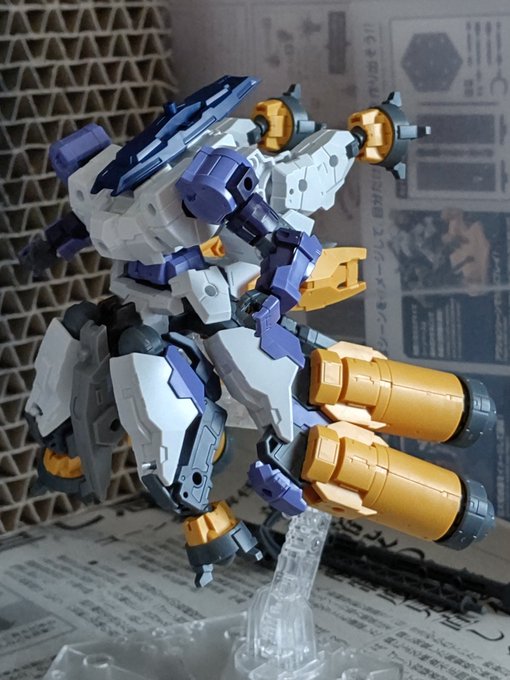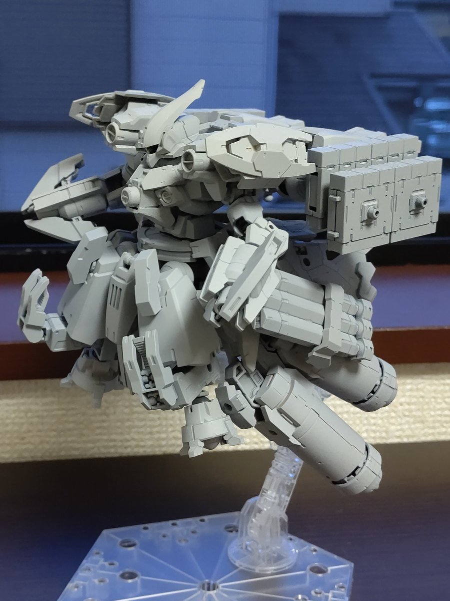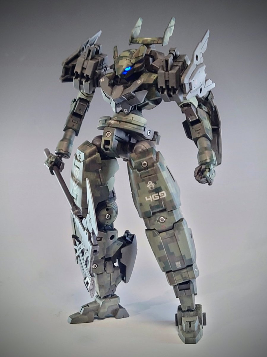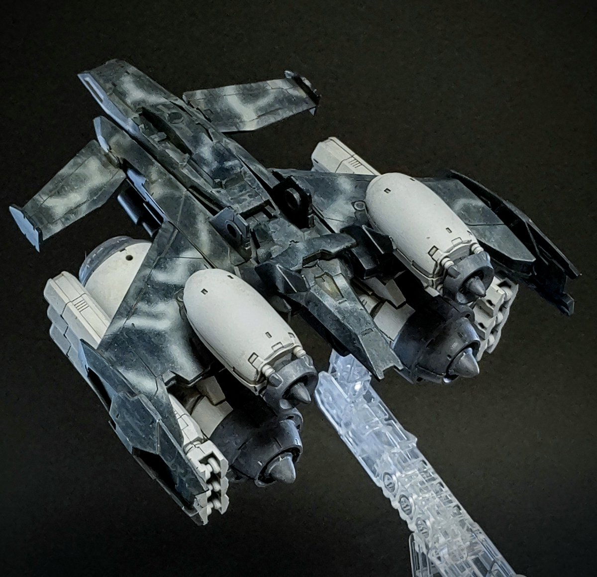 グフ フライトタイプ リペアード 長年のゲリラ活動で肩部バーニアの予備部品が尽き、一度は飛行不能となったが、強奪した大型輸送機のジェットエンジンによって推力の不足を補い再び空を飛ぶことになった。 #俺たちのトリントン #俺トリジオン残党軍 #ガンプラ