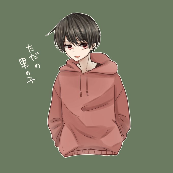 おとこのこ2⸜( ˙꒳˙ )⸝ 割と何も考えずに手癖で描くとき、 黒髪赤目赤パーカーが多いかもと思った #イラスト #絵描きさんと繋がりたい