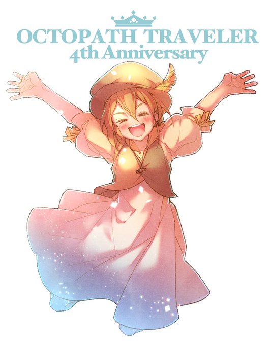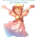 オクトパストラベラー4周年おめでとうございます🥳🎉🎂🎉🎊🎉🎊🎉 4年目も毎日オルステラを歩いては楽しい日々です🐙アイラちゃん!記念の導石いっぱいくれてありがとう!!!大好き!!! #オクトラシリーズ4周年記念ファンアート #OctopathTraveler #Octopath4thAnniversary