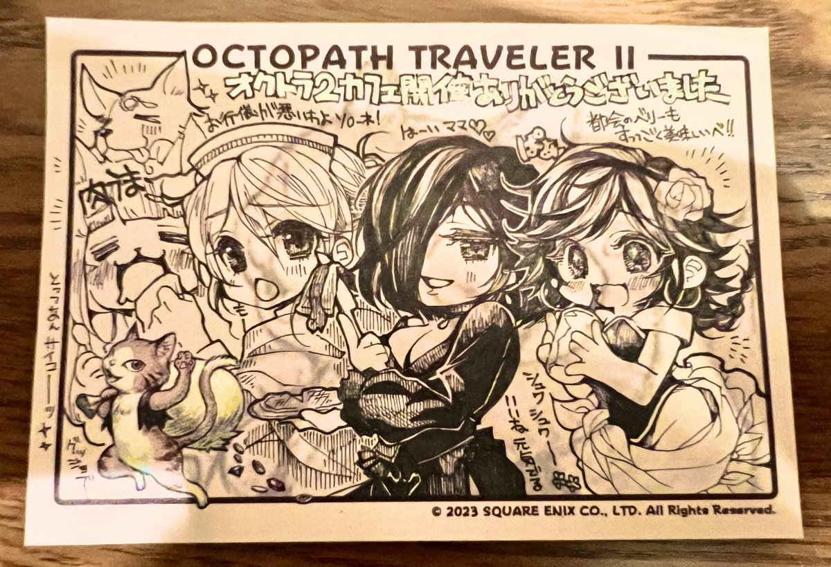 キャンペーン用再放送4 大陸の覇者sideソリスティアカフェ祈願 オクトラ2カフェのメッセージボードにはファンの思いがこもったイラストやメッセージがこれでもかと限界突破で貼られてて圧巻の一言だったので、興味がある方はスクエニカフェさんのTwitterを遡ってみるといいかも #オクトラ大陸の覇者SS