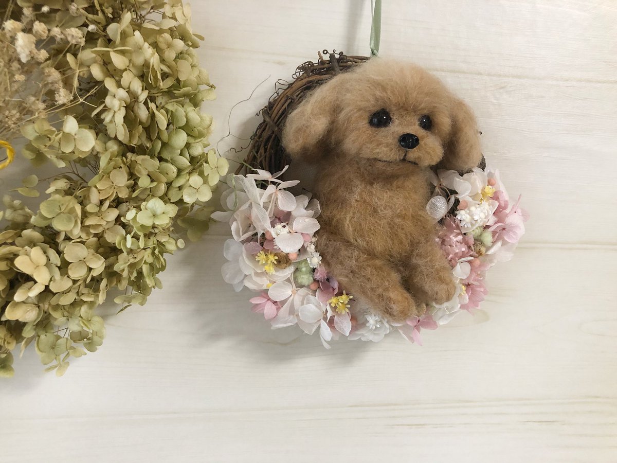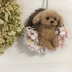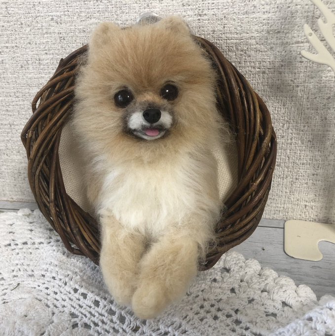 今日もあいにくの雨のため、写真が暗くなってしまう💦 オーダーのポメちゃん完成🐕 #ポメラニアン #pomeranian #ふわもこ #羊毛フェルト #needlefelting #オーダーリース #プリザーブドフラワー