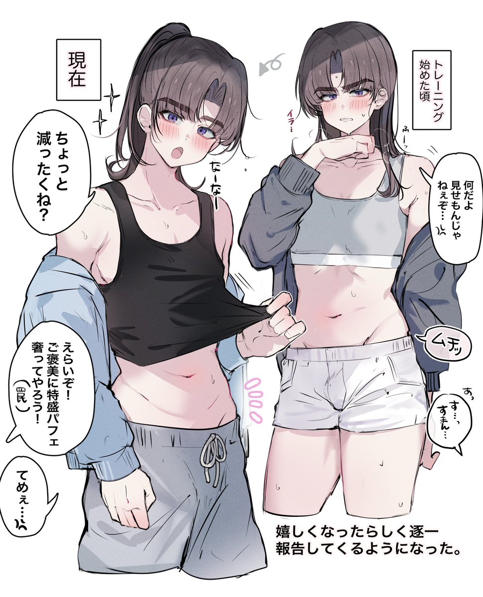 いつもより服がすんなり入ってちょっと嬉しそうな幼馴染くん♂