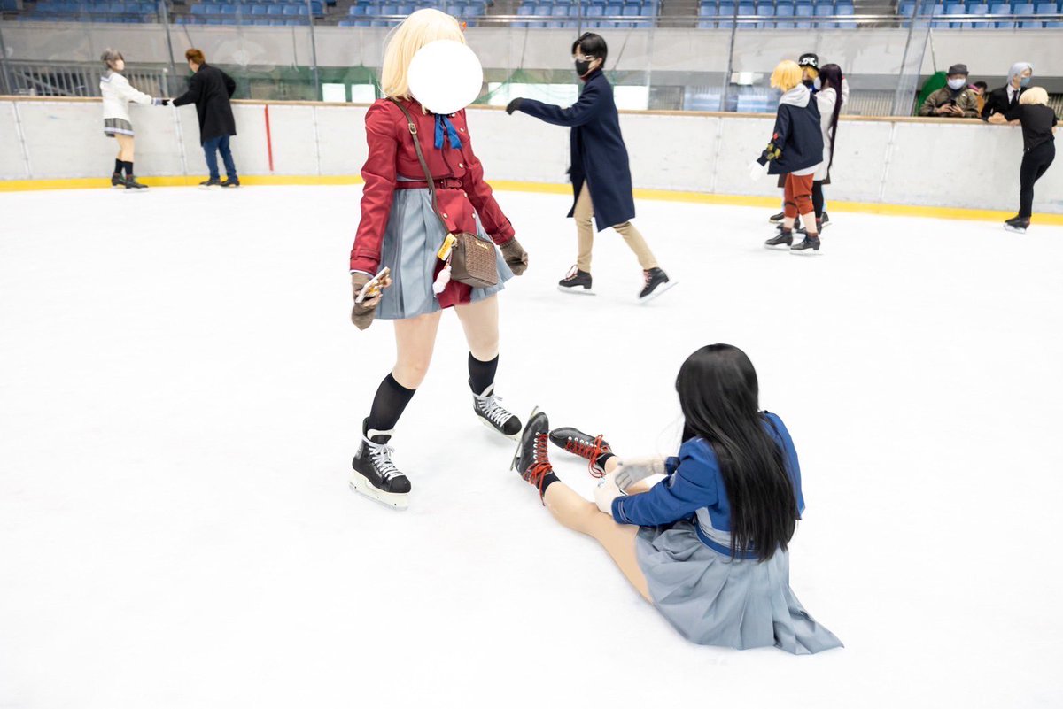 ⚠cos.リコリスリコイル キャラ崩壊注意 JKの制服は都会の迷彩服… あれ、氷の上じゃ目立ってる、❓それとも…私のせい⁉️ 千束@kmt_rbk p.@kirikoma #ビビコス日本ガイシアリーナ #ビビコス