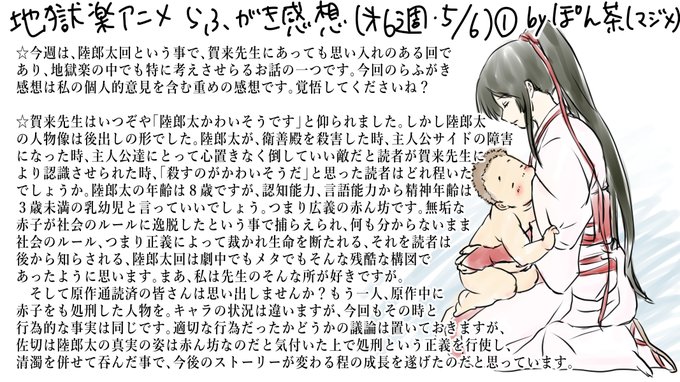 最終話だけ2週間遅れの投稿となってしまいました🙇♀️事情をご存知の方もいらっしゃいますが複合的な理由でして、この最終話直前の特番で私、お便りが採用されまして、推しに名前を呼ばれるという奇跡が起きて情緒が狂い、ずっと上の空でした🤯その話はまた後日。 #地獄楽ファンアート #地獄楽アニメ