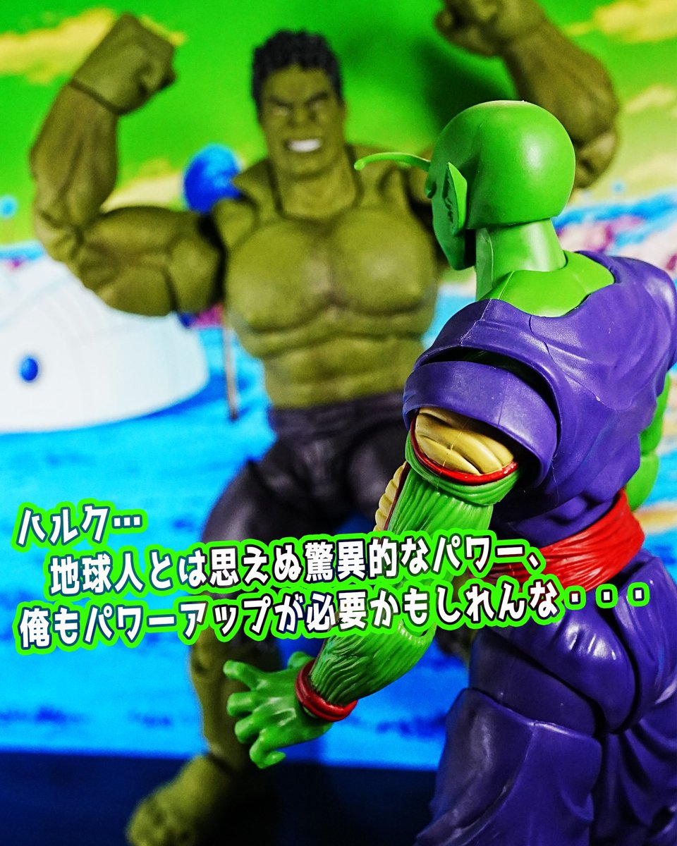 #おもちゃ撮影会 7/2 テーマ「望み」 ピッコロの望み #お笑いフィギュア劇場 #オモ写 #toyphotography #ドラゴンボール超スーパーヒーロー #ドラゴンボール #フィギュアーツ #SHFiguarts #ピッコロ #Avengers #ハルク