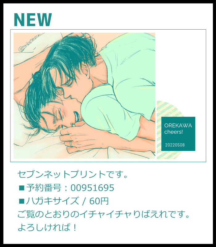 俺かわCheers🥂のねぷり、期限を描いてなかったような気が…! 5/15までプリントできますので、アイス買いに行くついでにでも🤗 19くんがかわいくてつい吸ってしまうりう゛ぁいさんでした。 えれんちゃんお肌柔らかくて伸びるタイプな気がするんですよね🐙 #俺かわアフター