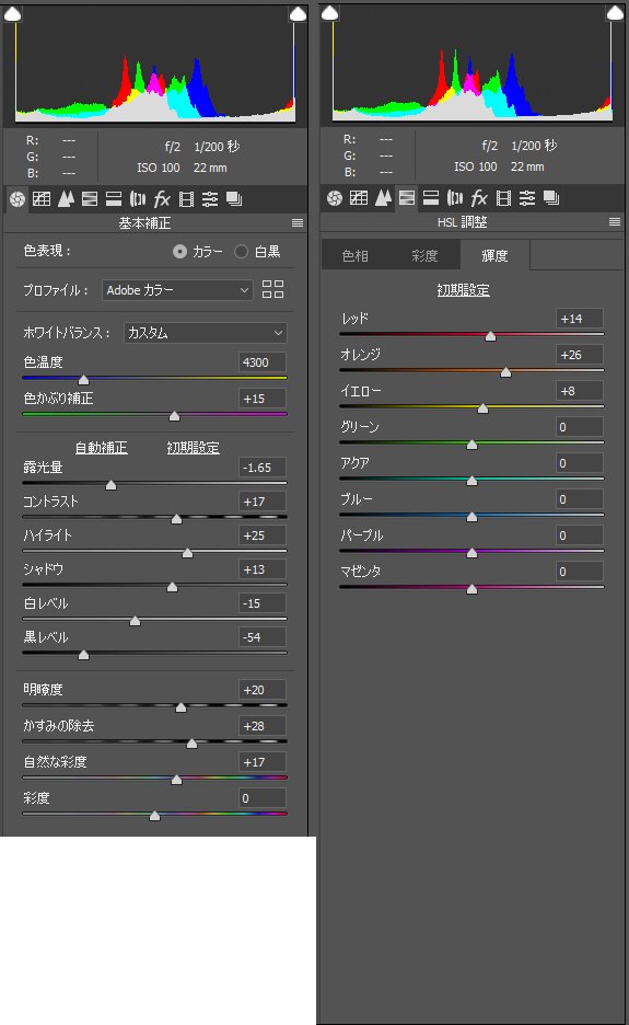 この写真をこういう風に現像してこうなる。 ちょっと雰囲気出て来た!? (露出-1以上するの恥ずかしい…)