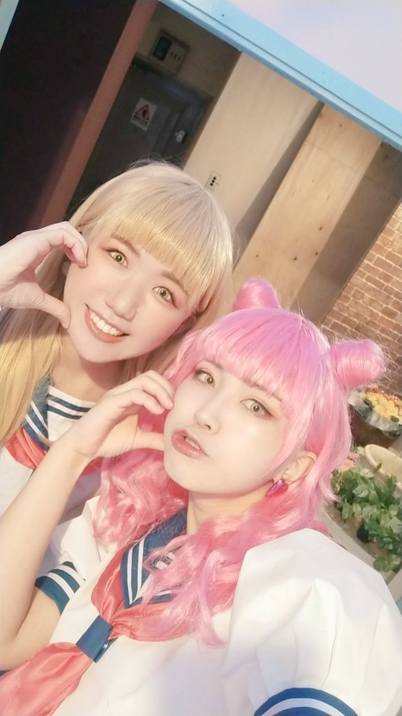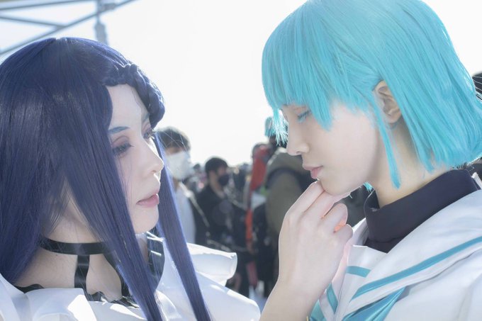 コミケの思い出〜!!ひよさんと ギラギラ×永遠のあくる日で 百合してました♥ はらやんさんお写真ありがとう〜〜!! #コミケ101 #コミケC101コスプレ ギラギラ 鵯(@hiyodori_tf) あくる日 柑橘 📸 はらやんさん(@juzosuzu13 )