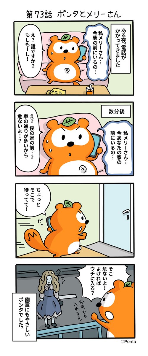 第73話「ポンタとメリーさん」 #ポンカン #ポンタ #世にも奇妙な4コマ漫画