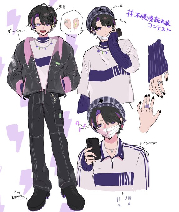 #不破湊新衣装コンテスト #絵スコート 💜💗💚