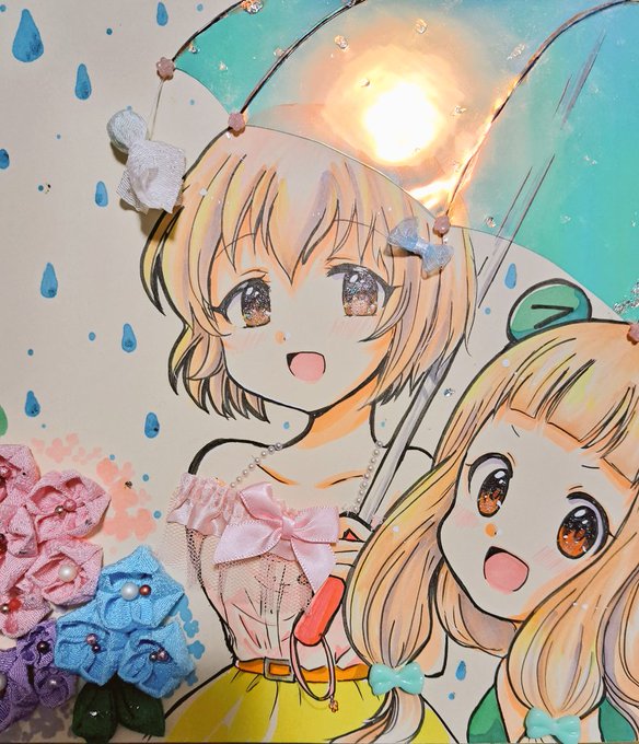 歌姫に持っていく傘がデコられた大色紙☔ 小春ちゃんと仁奈ちゃん💐