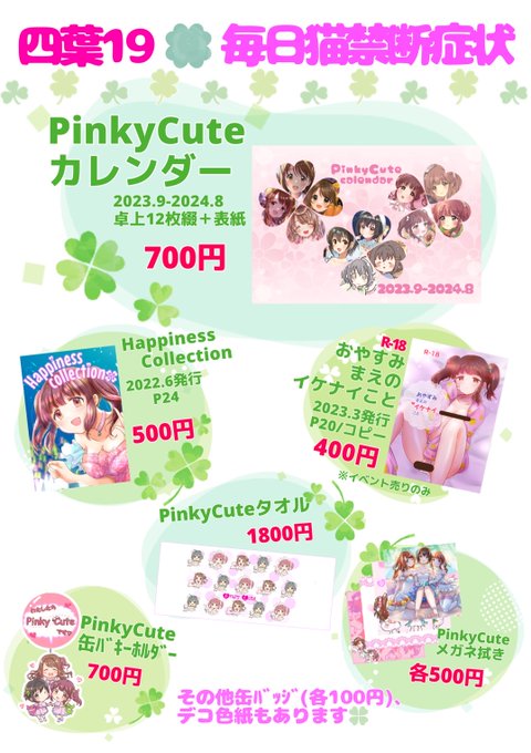 28 67 主催なのに告知遅くて申し訳ないです……!! ピンキーキュートカレンダー、私は5月を担当しました! まじのまじのマジで参加者様の神絵が毎月見られる大満足な出来になってますので、ピンキュちゃんよく知らないよ~って人にも手に取っていただきたいです! 6/11智絵里オンリー他、通販予定してます。 23/05/27 02:33