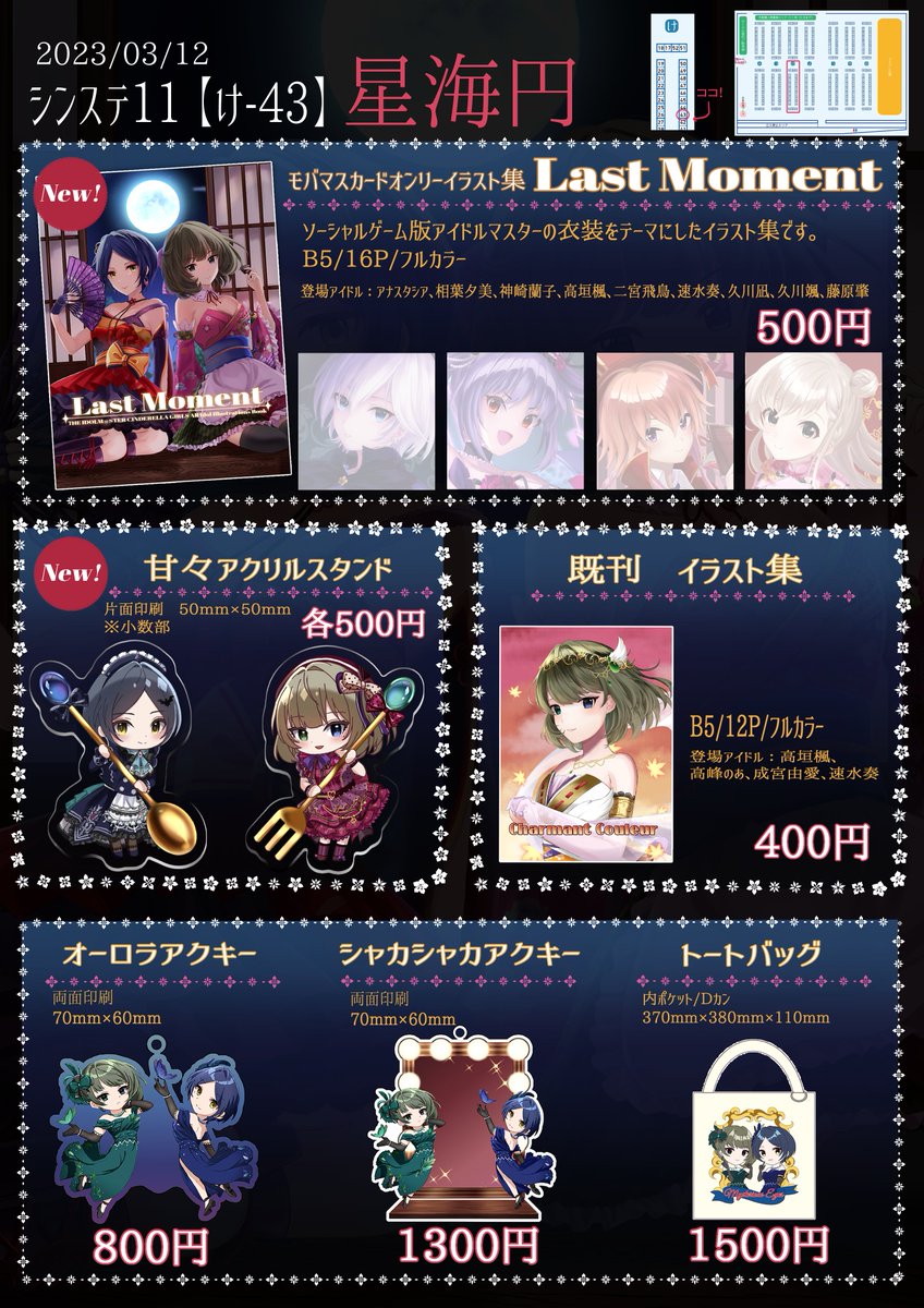 3/12に開催されるシンステ11のお品書きになります💐 モバマスカードオンリーのイラスト集とバレンタインぽいアクスタが新作です🍫 【け-43】にてお待ちしております! #cin_stage #シンステ11
