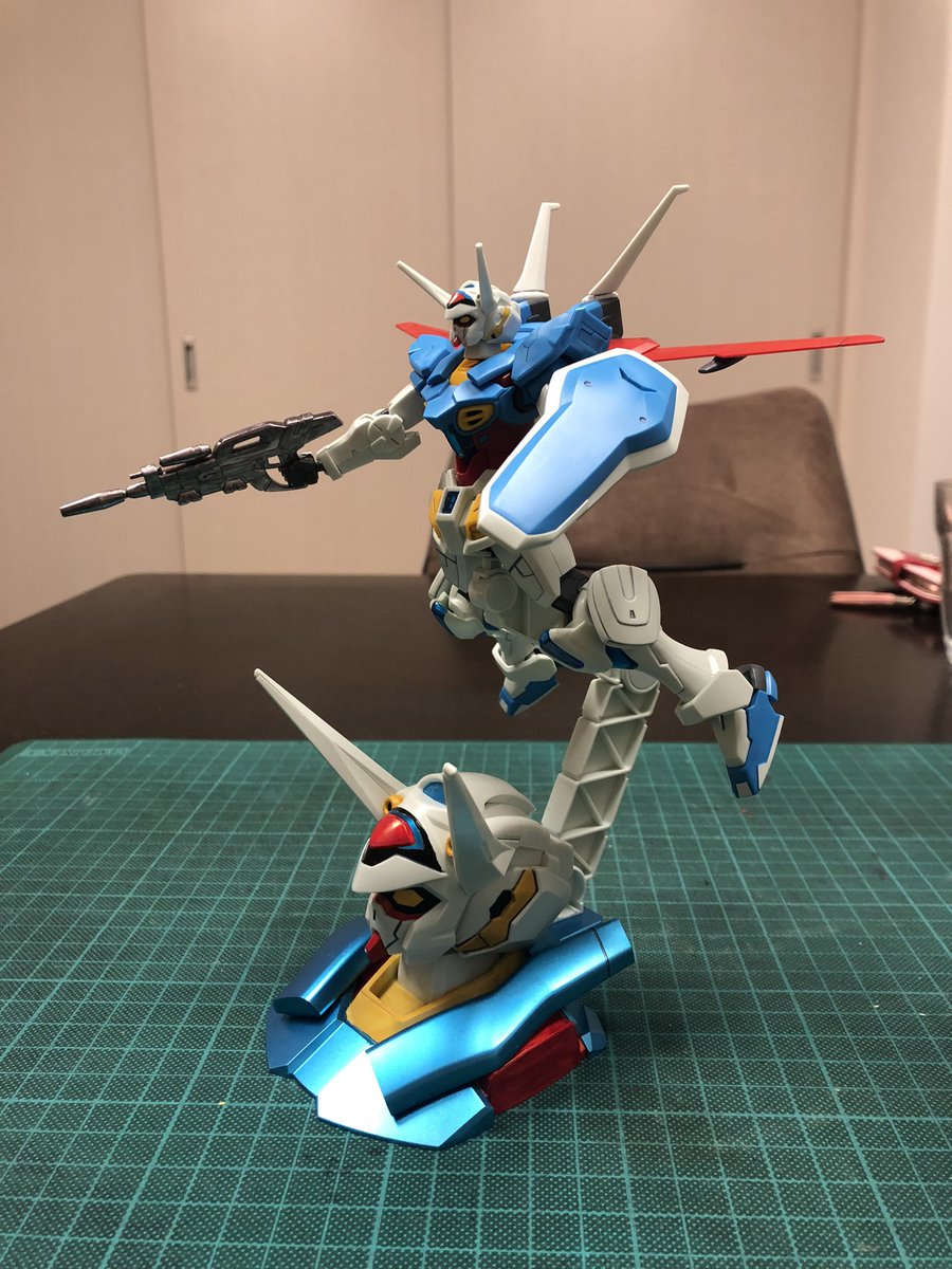 #今月作ったプラモ晒そうぜ あれ、忙しくて全然作ってないのに、2月ってもう終わったの?🤣 2個だけですが、1個目が新サクラ大戦のHG無限アナスタシア機。2個目がGのレコンギスタからG-セルフヘッドディスプレイキット。ガンダムマーカーエアブラシ塗装を初チャレンジしてみました。 #ガンプラ