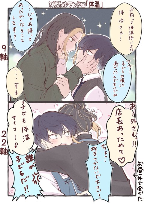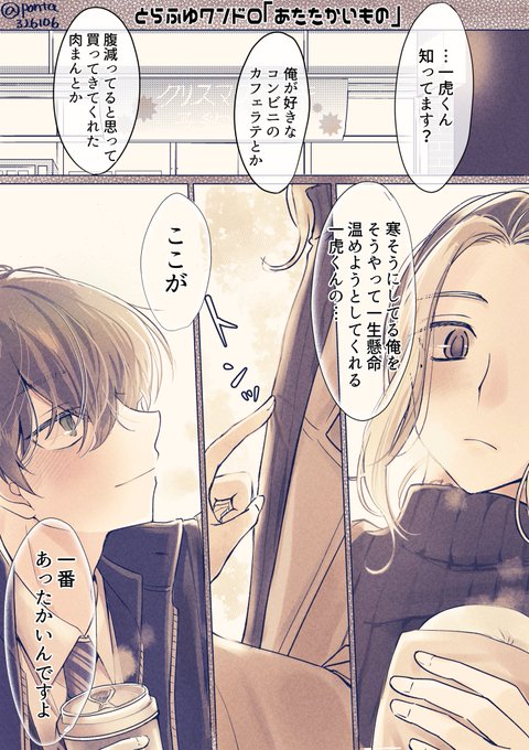 とらふゆワンドロお題「あたたかいもの」 過去のお題から失礼します。 ちょこちょこやってたので時間測れませんでした💦(とてつもなくオーバー) 相互さんが考えてくださったシチュエーションです!メリークリスマス🎶 @trfy_1dr1wr #trfy_1dr1wr