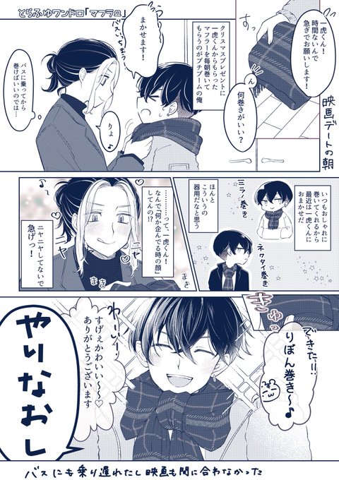とらふゆワンドロ お題「マフラー」 大遅刻すみません💦+2.5? 再開おめでとう?ありがとうございます! 🐯にマフラー巻いてもらう❄️✨ @trfy_1dr1wr #trfy_1dr1wr
