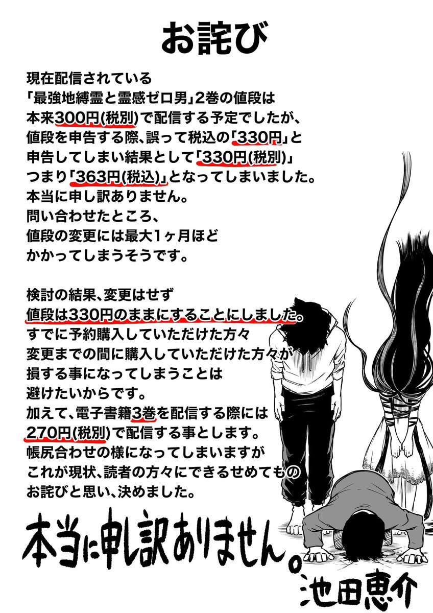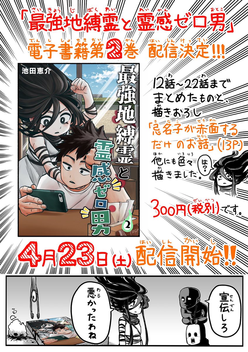 そういや昨日から8月13日まで「最強地縛霊と霊感ゼロ男」の電子書籍1、2巻が一部ストアで30%オフだそうです。俺がヘマして30円高めに設定してしまった2巻を買うなら今です。ホントすいません。 amazon.co.jp/dp/B09XT2BXX1?…