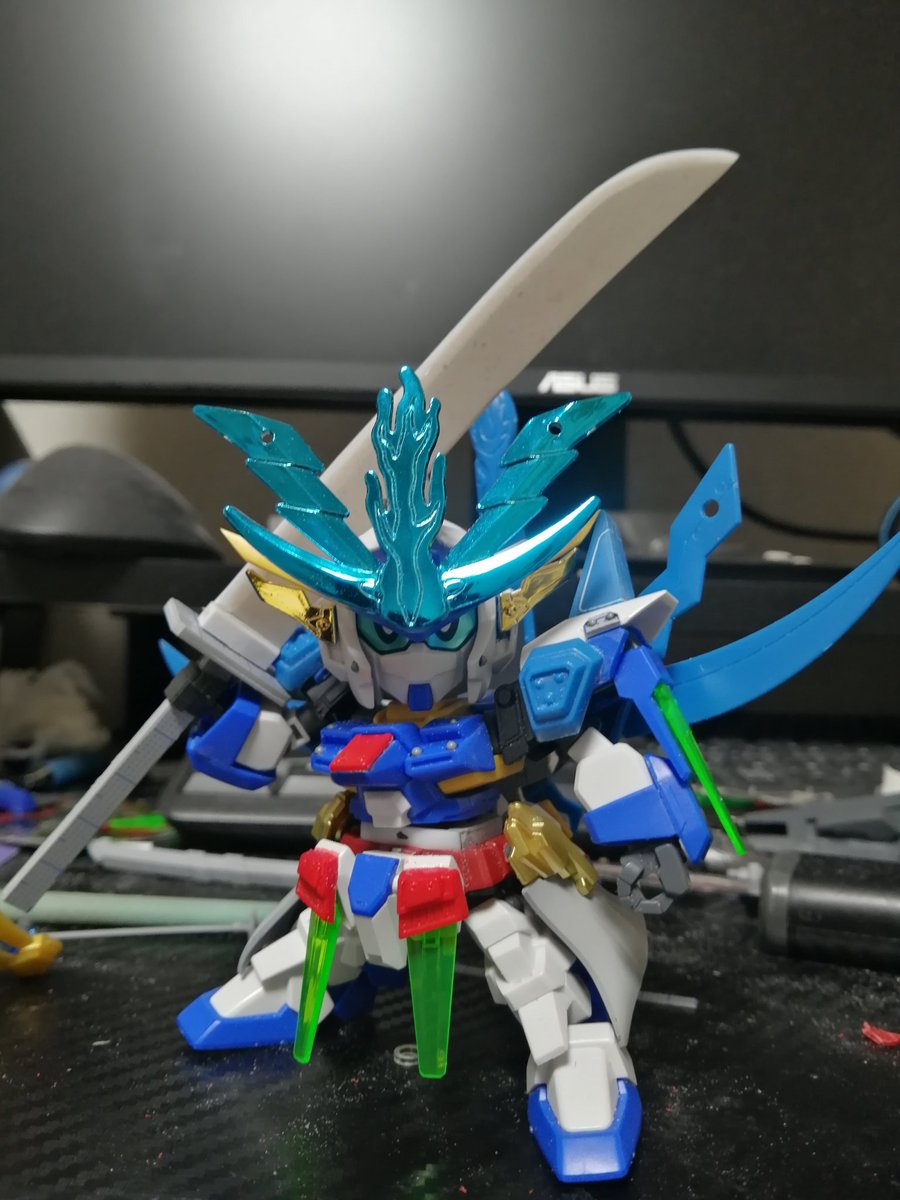武者壱刃留須(ムシャインパルス)アップデート完了しました! 創傑伝パーツ組み込んだり色塗り直しとかしました。 #SD戦国運命伝 #SDガンダム #ガンダムSEED
