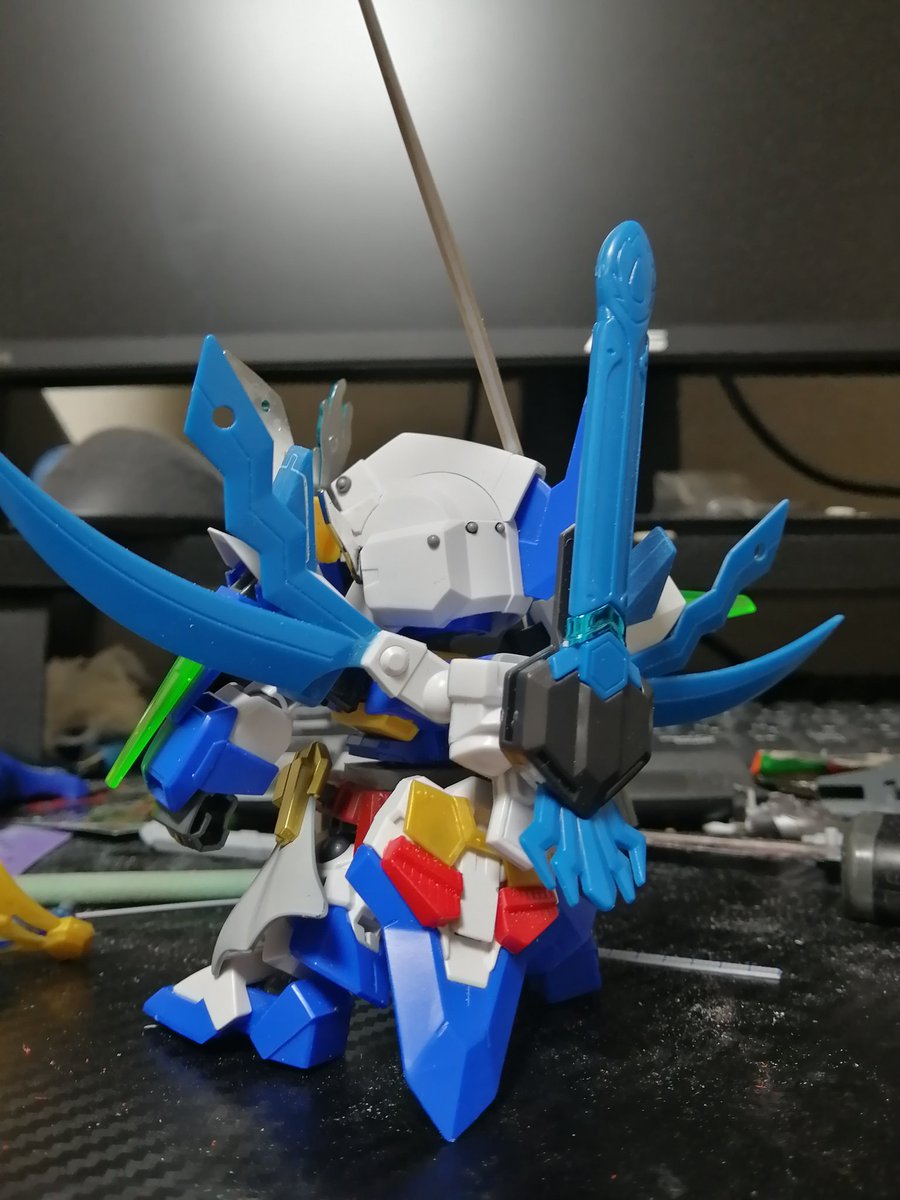 新永久志娃(ネオエクシア)できました!! 地帝の神器を装備させたので新です。デヴァイズだったりリペアIIIだったりします。 #SDガンダム #ガンダムエクシア