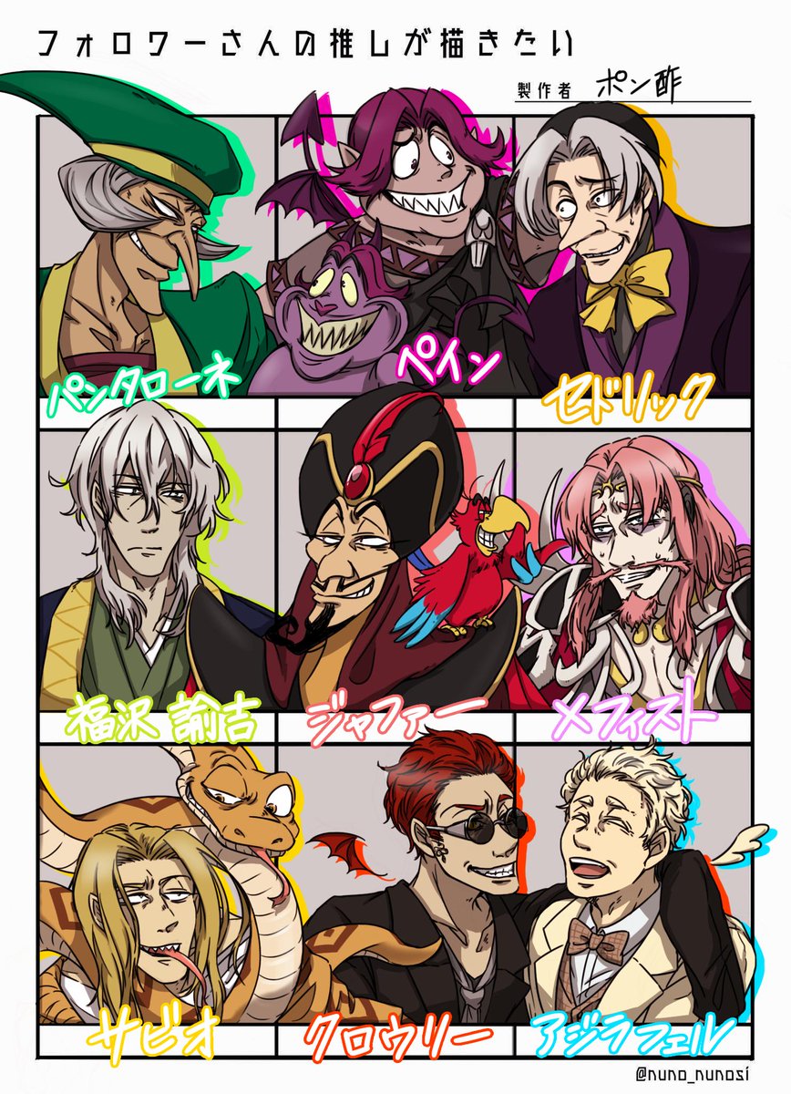 タグ反応ありがとうございマース😊! 久々に大人数描けて、大満足デース! #フォロワーさんの推しが描きたい