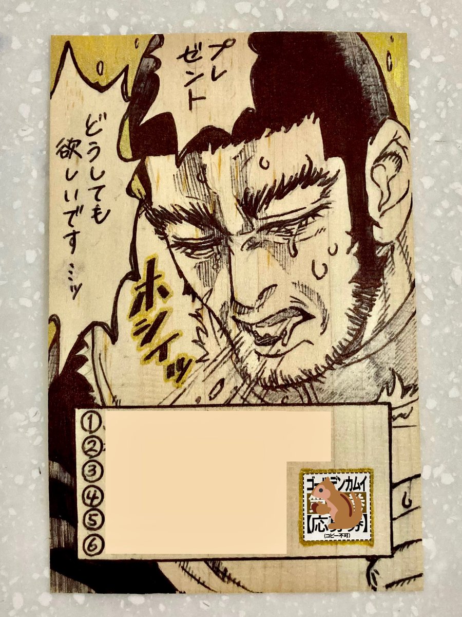 白石の秘密のプレゼント企画、応募ハガキに全力を注ぎましたぜ! 世界観に合いそうだから、檜のハガキに描いてみた🌲