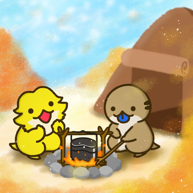 じーたろ君にキャンプに連れてきてもらった、ふーごろさん🏕🍁 #キャンプ #イラスト