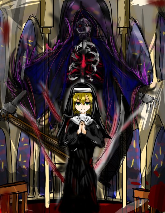 シスターさんとそのスタンド?的なの描きました。 #オリキャラ #絵描きさんと繋がりたい #イラスト