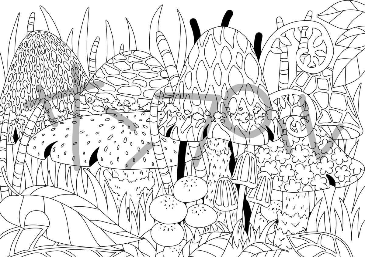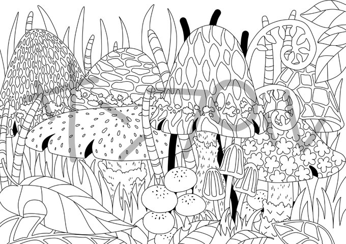 メルヘン大人の塗り絵2枚目はきのこ🍄 #塗り絵 #大人の塗り絵 #イラスト #線画