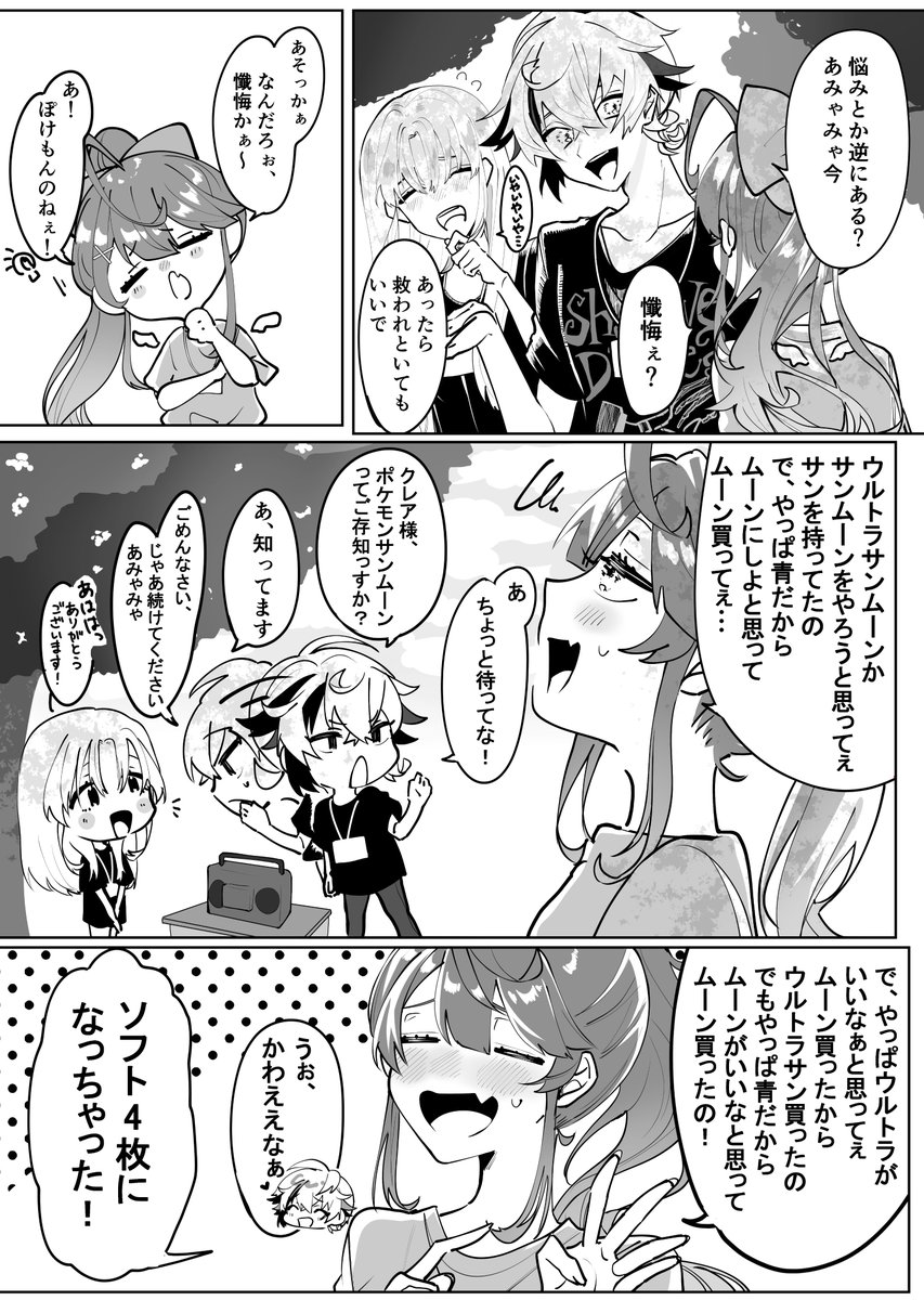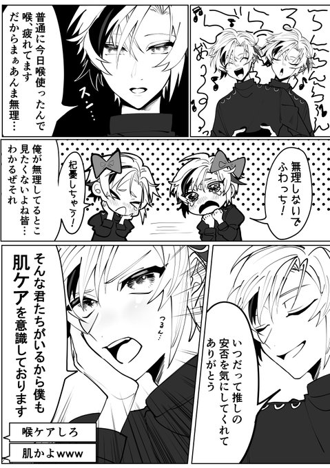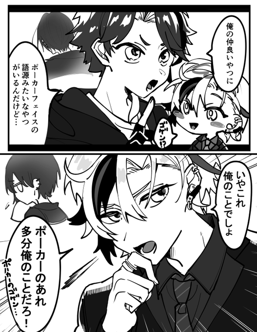 何もなかったら特に修正しなそうないつも通りの脳死の冗談なのに急いで言い直すとこに寂しさとかエモさを感じて好きだったとこ (イメージで一緒に居るふうで描いてるけど実際はオンラインコラボ)