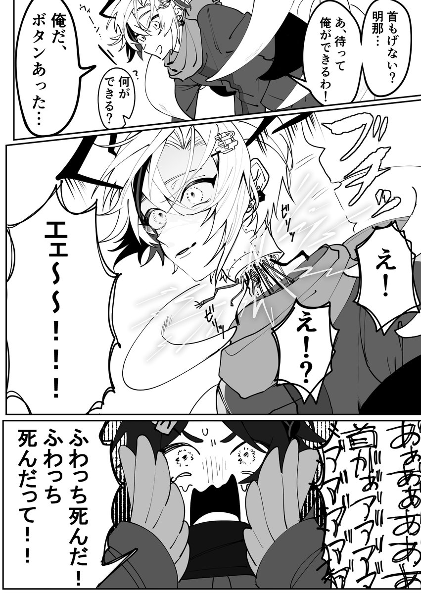 違う冬のふわぐさ好きシーン 首もげた本人はケロッとしててあきにゃが慌ててる温度差がLove ⚠️ふわくんの首がもげてます。